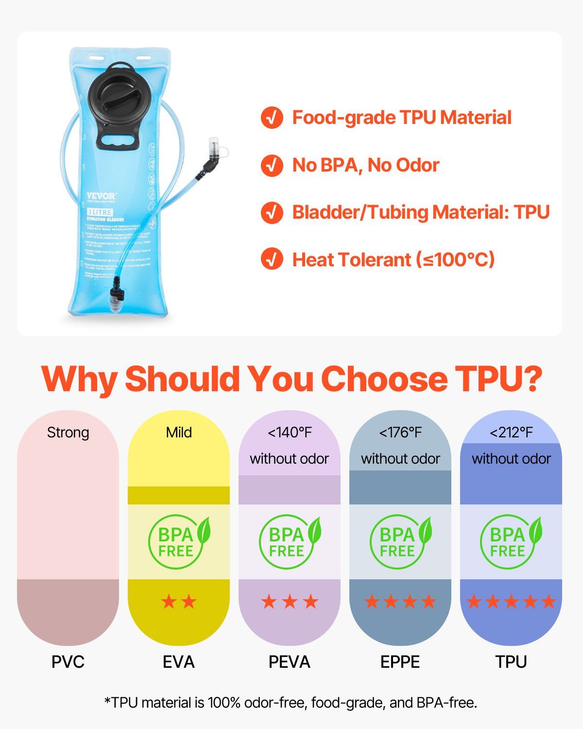 2.3L Practical Water Bladder: The hiking backpack with hydration bladder includes a food-grade TPU water bladder, ensuring a pleasant drinking experience. Its leak-proof automatic shut-on/off valve and sealed detection technology avoid leak risks, providing you with peace of mind.